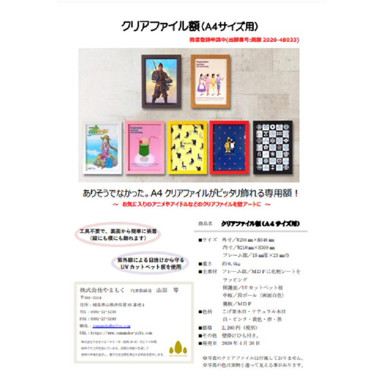 ありそうでなかった!A4クリアファイルがピッタリ飾れる専用額。
